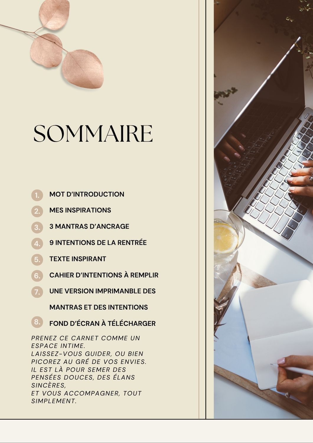 Ce carnet digital a été imaginé pour toutes celles qui, en ce moment particulier, souhaitent me soutenir avec le cœur tout en s’offrant un instant de recentrage, de beauté, d’inspiration et de clarté.